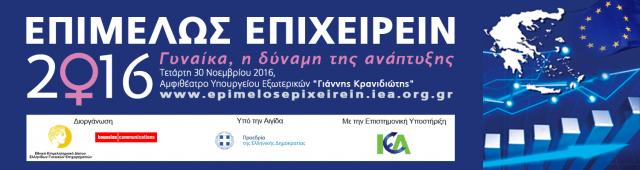 Το Εθνικό Επιμελητηριακό Δίκτυο Ελληνίδων Γυναικών Επιχειρηματιών και η Boussias Communications διοργανώνουν, υπό την αιγίδα της Κεντρικής Ένωσης Ευρωπαϊκών Επιμελητηρίων (Eurochambers) και της Κεντρικής Ένωσης Επιμελητηρίων Ελλάδος (ΚΕΕΕ), το στρατηγικό Συνέδριο: «ΕΠΙΜΕΛΩΣ ΕΠΙΧΕΙΡΕΙΝ 2016: Γυναίκα, η δύναμη της ανάπτυξης»