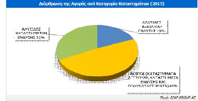 Βασικό χαρακτηριστικό του συγκεκριμένου κλάδου είναι ο μεγάλος αριθμός μεμονωμένων καταστημάτων αξεσουάρ ένδυσης που λειτουργούν στη χώρα, ενώ περιορισμένος είναι ο αριθμός των αλυσίδων αξεσουάρ ένδυσης (καταστήματα που λειτουργούν κάτω από το ίδιο εμπορικό σήμα). Βεβαίως, υπάρχουν διαφοροποιήσεις μεταξύ των αλυσίδων ως προς το είδος και το μέγεθός τους, αλλά και τον τρόπο ανάπτυξης των δικτύων τους (εταιρικά καταστήματα, franchise, shop in shop, εκπτωτικά). Τα συμπεράσματα αυτά και οι προοπτικές εξέλιξης του κλάδου προκύπτουν από την πρώτη έκδοση της κλαδικής μελέτης «Καταστήματα Αξεσουάρ Ένδυσης» που εκπόνησε η Διεύθυνση Οικονομικών Μελετών της ICAP Group ΑΕ.