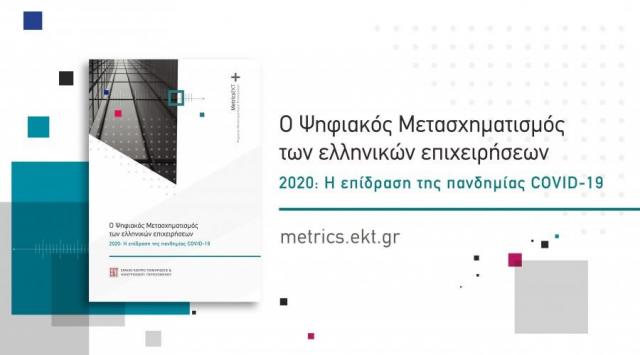 Αυτά είναι ορισμένα από τα σημαντικότερα ευρήματα της νέας στατιστικής έρευνας του Εθνικού Κέντρου Τεκμηρίωσης και Ηλεκτρονικού Περιεχομένου (ΕΚΤ) που υλοποιήθηκε στα τέλη του 2020 και τα οποία δημοσιεύονται στην έκδοση «Ο Ψηφιακός Μετασχηματισμός των ελληνικών επιχειρήσεων, 2020: Η επίδραση της πανδημίας COVID-19
