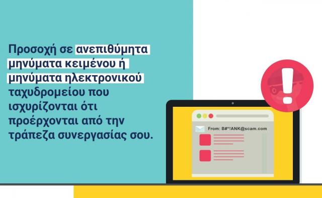 Στο πλαίσιο αυτό η Ελληνική Ένωση Τραπεζών (ΕΕΤ) έχει αναρτήσει στην ιστοσελίδα της ενημερωτικά βίντεο και infographics με οδηγίες αναγνώρισης και προστασίας από διάφορους τύπους ηλεκτρονικής απάτης (phishing, smishing και vishing).