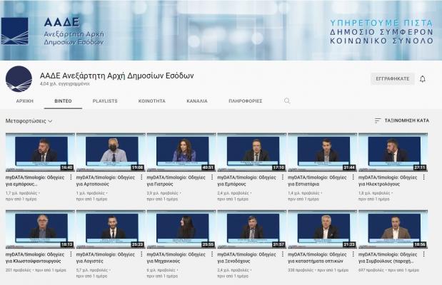 Στην ανάρτηση 15 ενημερωτικών βίντεο για τη χρήση της εφαρμογής timologio προχώρησε στο κανάλι της στο youtube η Ανεξάρτητη Αρχή Δημοσίων Εσόδων.