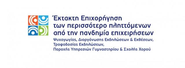 Δημοσιεύθηκε η νέα Δράση του ΕΠΑνΕΚ «Έκτακτη επιχορήγηση των περισσότερο πληττόμενων από την πανδημία επιχειρήσεων ψυχαγωγίας, διοργάνωσης εκδηλώσεων και εκθέσεων, τροφοδοσίας εκδηλώσεων, παροχής υπηρεσιών γυμναστήριου και σχολής χορού», προϋπολογισμού 50 εκ. ευρώ, η οποία ενισχύει τις επιλέξιμες επιχειρήσεις που αντιμετωπίζουν ανεπαρκή ρευστότητα, αλλά υφίστανται επίσης σημαντική οικονομική ζημία, λόγω των συνεχιζόμενων επιπτώσεων από τα μέτρα για τον περιορισμό της έξαρσης της νόσου COVID-19. Η Δράση παρέχει στοχευμένη δημόσια στήριξη για τη διατήρηση της συνέχειας της οικονομικής τους δραστηριότητας.