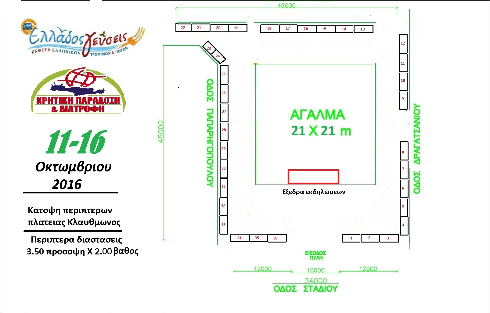 Το Φεστιβάλ στο οποίο θα προβλέπεται και η άμεση πώληση (ως προωθητική ενέργεια) από τον παραγωγό στον καταναλωτή σε χαμηλές τιμές, αφού στόχος είναι η προβολή των προϊόντων και όχι το κέρδος, θα στεγαστεί σε καλαίσθητες υπαίθριες κατασκευές, τύπου Παγόδας βαρέως τύπου, σε μία έκταση 500 τ. μ. σε ένα από τα πιο πολυσύχναστα σημεία της πόλης του Αθήνας.