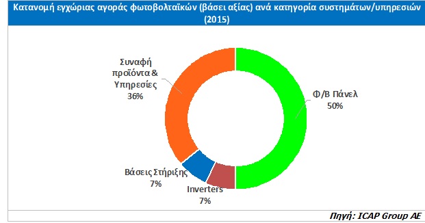 Ο Μάρκος Κοντοές αναφέρει επίσης ότι η ετήσια (νέα) εγκατεστημένη ισχύς Φ/Β συστημάτων στην Ελλάδα αυξήθηκε με εντυπωσιακό ρυθμό την περίοδο 2010-2013 και η δυναμική ανάπτυξη της αγοράς οδήγησε στην εκτόξευση του αριθμού των εταιρειών προμήθειας και εγκατάστασης συστημάτων ΑΠΕ. Η αντίστοιχη αγορά ακολουθησε ανάλογη την ίδια περίοδο. Έκτοτε, καταγράφει ελεύθερη πτώση και κυμάνθηκε σε εξαιρετικά χαμηλά επίπεδα την τελευταία διετία (2014-2015). Τα Φ/Β πάνελ κάλυψαν το 50% της αξίας της εγχώριας αγοράς Φ/Β συστημάτων και ακολούθησαν οι μετατροπείς (inverters), οι βάσεις στήριξης φωτοβολταϊκών και ο λοιπός εξοπλισμός και υπηρεσίες.