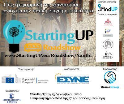 Μετά το πετυχημένο πέρασμα από την Πελοπόννησο, το 1ο Roadshow Καινοτομίας & Επιχειρηματικότητας StartingUP έρχεται στην Θράκη και την Ξάνθη.
