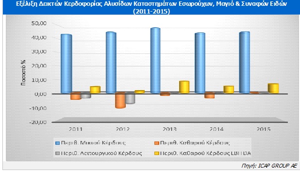Σύμφωνα με την Ελένη Δεμερτζή, Senior Manager της ICAP Group, το συνολικό μέγεθος αγοράς (πωλήσεις σε αξία) των καταστημάτων παρουσίασε μείωση 2,8% το 2015 σε σχέση με το 2014. Η πτωτική αυτή τάση ανακόπηκε το 2016, καθώς οι συνολικές πωλήσεις εκτιμάται ότι αυξήθηκαν κατά 1,4%.