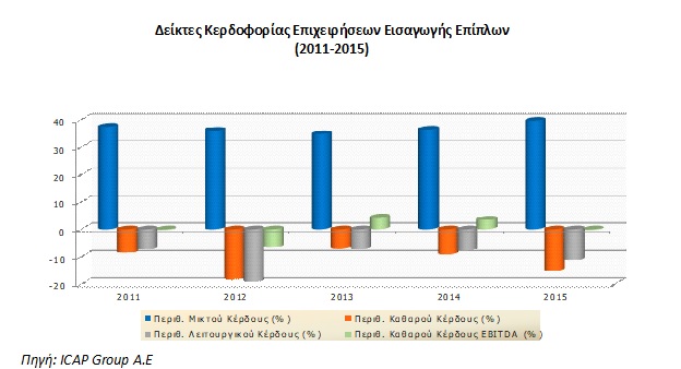 Από την επεξεργασία 10 εισαγωγικών επιχειρήσεων του κλάδου (με διαθέσιμα οικονομικά στοιχεία για τη διετία 2014-2015), παρατηρούνται τα εξής: