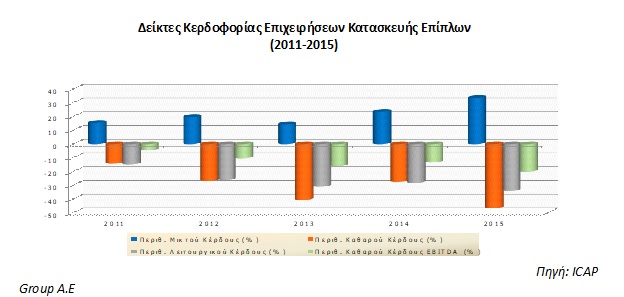 Τα μεγέθη της ιδιωτικής οικοδομικής δραστηριότητας παρουσιάζουν κατακόρυφη μείωση τα τελευταία έτη, επηρεάζοντας και τις πωλήσεις των επίπλων. Ειδικότερα, ο αριθμός των αδειών μειώθηκε συνολικά κατά 76,6% την περίοδο 2009-2015, η συνολική επιφάνεια κατά 80,5% και ο όγκος κατέγραψε μείωση κατά 76,8%.