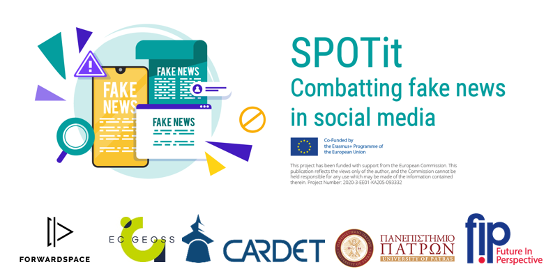 Το έργο «SPOTit: Combatting Fake News in Social Media» εστιάζει στην ανάπτυξη των δεξιοτήτων γραμματισμού στα μέσα ενημέρωσης, ώστε οι νέοι να είναι σε θέση να αξιολογούν τυχόν μη αληθές περιεχόμενο που διαβάζουν στα μέσα κοινωνικής δικτύωσης.