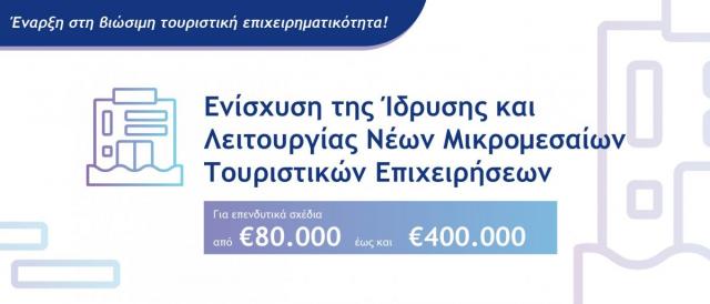 Το Υπουργείο Εθνικής Οικονομίας και Οικονομικών ανακοίνωσε την προκήρυξη της Δράσης «Ενίσχυση της Ίδρυσης και Λειτουργίας Νέων Μικρομεσαίων Τουριστικών Επιχειρήσεων» του Προγράμματος «Ανταγωνιστικότητα» (ΕΣΠΑ 2021-2027), προϋπολογισμού 160.000.000€. Η Δράση αφορά στην ενίσχυση της τουριστικής επιχειρηματικότητας μέσω της δημιουργίας νέων πολύ μικρών, μικρών και μεσαίων επιχειρήσεων επιλεγμένων κωδικών δραστηριότητας (ΚΑΔ) του τουρισμού, ενθαρρύνοντας τη δημιουργία νέων επιχειρήσεων που εκτός από την συμβολή τους στην αύξηση της δυναμικότητας της ελληνικής τουριστικής βιομηχανίας, θα προσφέρουν ποιοτικές και αξιόπιστες υπηρεσίες και θα συμβάλουν στον εμπλουτισμό του τουριστικού προϊόντος, καθώς και στην αύξηση της απασχόλησης.