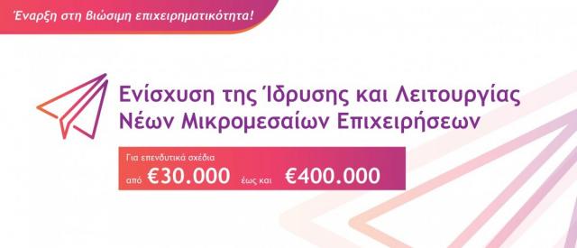 Ο ελάχιστος και ο μέγιστος επιχορηγούμενος προϋπολογισμός επενδυτικών σχεδίων κυμαίνεται από 30.000€ έως και 400.000€