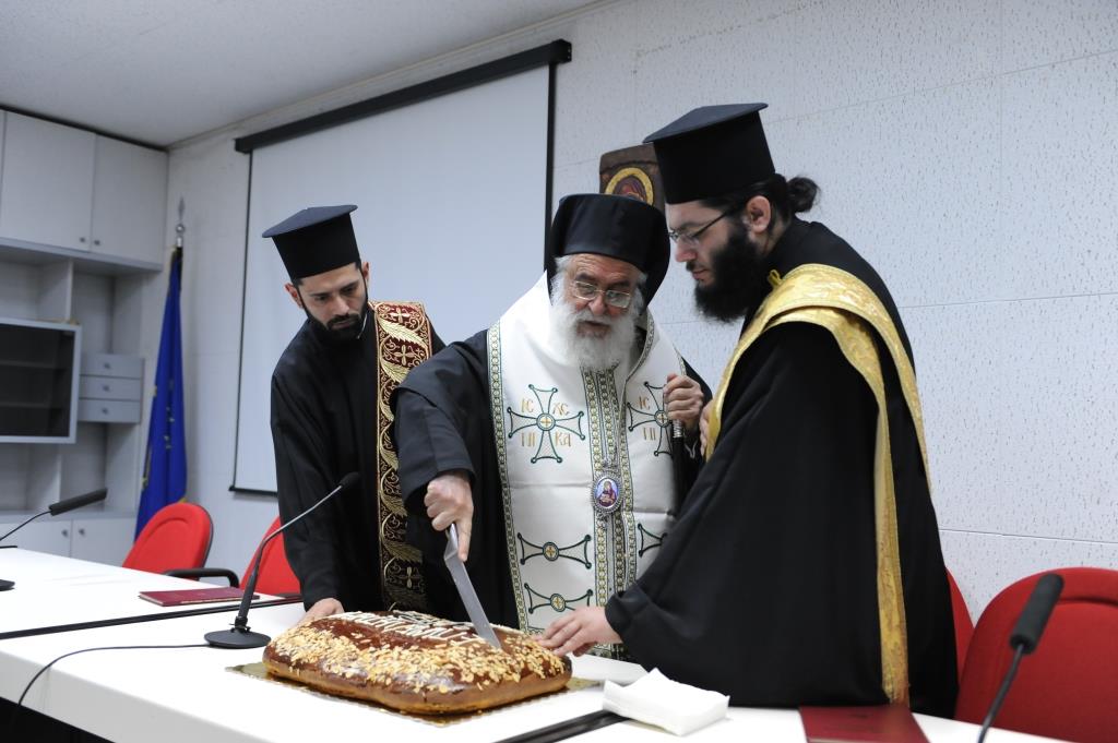 Τη βασιλόπιτα ευλόγησε ο Σεβασμιότατος Μητροπολίτης Ξάνθης & Περιθεωρίου κ.κ. Παντελεήμων, παρουσία του Περιφερειάρχη Α.Μ.-Θ. κ. Γιώργου Παυλίδη, του π. Υπουργού κ. Αλέξανδρου Κοντού, του Αντιπεριφερειάρχη Π.Ε. Ξάνθης κ. Κωνσταντίνου Ζαγναφέρη, του Αντιπεριφερειάρχη Τουρισμού Α.Μ.-Θ. κ. Μιχάλη Αμοιρίδη, του Δημάρχου Μύκης κ. Τζεμήλ Καπζά, του Δημάρχου Τοπείρου κ. Θωμά Μίχογλου. Επίσης, παρέστησαν περιφερειακοί σύμβουλοι Α.Μ.-Θ, Αντιδήμαρχοι και δημοτικοί σύμβουλοι όλων των Δήμων της Π.Ε. Ξάνθης, εκπρόσωποι των Δήμων Ξάνθης και Αβδήρων, εκπρόσωπος του Στρατηγού Δ’ Σ.Σ., ο Πρόεδρος του Συνδέσμου Βιομηχάνων – Βιοτεχνών Ν. Ξάνθης κ. Θανάσης Πατσατζής, πολιτευτές των κομμάτων, εκπρόσωποι αρχών, φορέων και πολιτιστικών συλλόγων της περιοχής καθώς και πλήθος επιχειρηματιών - μελών και φίλων του επιχειρείν και του Επιμελητηρίου Ξάνθης.
